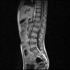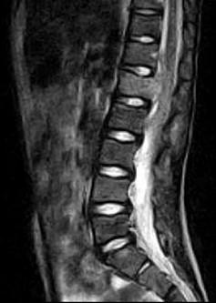 女,9岁,背部隐痛,发热1个月余,MRI检查如图,请选出最可能的诊断 ( )A、脊椎结核伴硬膜外脓肿B、椎体压缩骨折C、脊柱转移瘤...