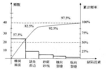 解析 (1)宜用以下方法分析存在的质量问题: 第一步,数据计算。 第二步,绘排列图。 第三步,分析。 (2)质量问题及处理方法 1)通过排列图的分析看出,主要的质量问题是混凝土块的蜂窝麻面和缺角损边问题, 次要是混凝土块体有砂斑砂线,一般问题是横向裂缝和纵向裂缝。 2)作为该工程的项目经理,处理办法为召集有关人员开专题会议,分析产生质量问题的原因,研究质量改进措施,督促项目质检人员制定具体的措施并提交监理工程师审查,经监理工程师审查同意后,实施改进。