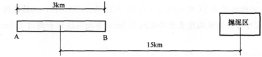 问题 背景资料 某施工单位用耙吸式挖泥船开挖航道施工,航道中心至抛泥区的距离为15kin,开挖航道长度3km,该船的舱容为5000m3,施工开挖的土质密度为1.85t/m3,耙吸船重载航速为9km/h,轻载航速为11km/h,挖泥时的航速为3km/h,上线、抛泥、调头等用时间45min,因突发大风、潮水不适停止作业1.5h,避让航船30min。一次挖槽长度满舱载重量7000t,作业情况如图所示。 问题 1.计算该船的泥舱装载土方量。 2.如图所示,计算由A挖至B的抛泥施工循环运转生产率。 3.计算该挖泥船的时间利用率。