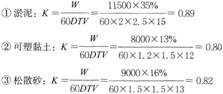 解析 (1)本工程分条宽度确定原则为:①正常情况下分条的宽度以三缆柱中心到绞刀前端水平投影长度的1.1倍为宜;②坚硬土质或在高流速地区施工,分条的宽度适当缩小;③土质松软和顺流施工时,分条宽度适当放宽。 (2)本工程淤泥宜选用前端直径较大的冠形平刃绞刀、可塑黏土宜选用直径较大的冠形方齿绞刀、松散砂宜选用前端直径较大的冠形平刃绞刀。? (3)挖掘生产率的影响因素主要有:挖掘的土质、绞刀功率、横移绞车功率等。本工程各种疏浚土质的绞刀挖掘系数为:?
