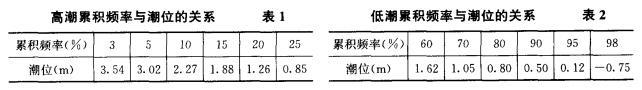 问题 我国北方某受冻区海港,实测的高、低潮位与累积频率的关系如表1、表2所列。 该海港码头水位变动区的范围是( )。 A. 2. 27 ~0.8 B. 1.85 ~0.5 C. 1. 27 ~-0.5 D. 3. 02 ~1. 05