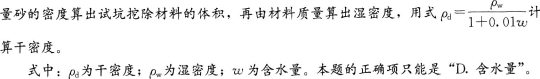选项 A.湿密度 B.标准压实度 C.耗砂量 D.含水量
