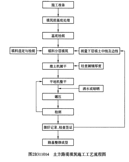 解析 教材P8页 土方路堤填筑施工工艺流程,图 2B311014 土方路堤填筑施工工艺流程图