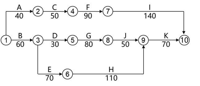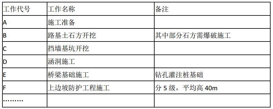 背景资料: 某二级公路的主要工序如下表: 施工单位编制了如下网络计划: 施工中发生了如下事件: 事件一:由于施工单位设备故障,导致 C 工...