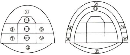 1.正确施工顺序⑤—⑥—③—④—⑨—⑩—⑦—⑧,理由:右侧围岩较左侧更差,先开挖;(13)—(12)—(14),理由:软弱围岩,尽快施工二衬,稳定拱部。