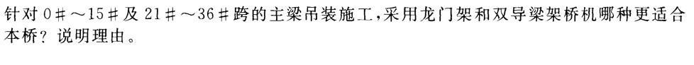 解析 优点:可以减少临时用地面积;可以降低场内 运输费用。 采用双导梁架桥机更适合本桥。 理由:(1)梁体较重,双导梁更合适,而龙门架对 桥位处地形要求高。 (2)桥梁较长,龙门架吊装速度慢,影响进度。 (3)吊装上重物后要长距离行走、龙门架安全 性差。 不可行,理由:墩柱较高、钢筋骨架可能变形, 应在钢筋骨架四周,从下到上的均匀设置垫块。 可能导致产生桥面铺装病害。 治理措施:控制主梁施工的预拱度;提高桥面防 水混凝土强度;提高桥面铺装的施工质量。 不应只考虑价格因素。 依据:供方资信状况、业绩及信誉、生产及供货保 证能力、质量保证能力、售后服务保证能力。 主要考查龙门架和双导梁架桥机 施工条件。用双导梁架设板梁、T梁、工字梁、箱梁, 是现今常用的架梁方法之一。在有水的河上、平坦的 旱地、桥下现有通车公路的跨线桥,均可适用。架设 费用低,工期短,安全可靠。 主要考查墩柱钢筋保护层控制方 法。墩柱钢筋笼吊起后要保证钢筋笼的垂直度,墩柱 钢模板也要有足够的刚度,安放、绑扎固定钢筋保护 层垫块应作为钢筋保护层控制的一个重要环节。并 且减轻混凝土入模冲击力对钢筋与模板间垫块的影 响,振捣时严格控制振捣棒落点位置。禁止振捣棒碰 触钢筋。 主要考查预拱度超过规范规定时 造成桥面铺装损坏及防治措施。预拱度是指为抵消 梁、拱、桁架等结构在荷载作用下产生的挠度,而在施 工或制造时所预留的与位移方向相反的校正量。由 于设置了预拱度,梁体的上部存在一定的拉伸应变, 所以,当预拱度超出了规范规定时,将对桥面铺装造 成破坏,为了防止这种病害产生可以从设计和施工量方面来进行控制,桥面铺装层设计时,应根据桥面的 受力状况,结合当前的交通现状,设置一定数量的受力钢筋和构造钢筋;对于结构刚度较小,震动较大,面 层拉应力较大的桥梁可采用柔性路面或其他强度、耐 磨性更好的新材料,如钢纤维混凝土等;同时应充分 考虑顸应力混凝土梁上拱度对铺装层混凝土厚度的影响。采用合理的配合比及优质水泥、砂石料等原材 料,严格按配合比施工。特殊季节如冬期施工或夏季 高温作业,应采取相应的防护措施以保证混凝土的质 量:铺装层完成后加强养护工作。以防收缩开裂:加 强交通管制,混凝土强度未达到设计强度时不得开放 交通。梁板预制时板顶应进行拉毛处理;浇筑铺装层 前板顶应彻底清理,凿除松动砂石浮浆,清除各种油 渍和杂物并清洗干净。保证新老混凝土粘结牢固;铺 设钢筋网时采取适当措施保证受力钢筋和构造钢筋 的位置准确,浇筑过程中人、机械不得直接踩踏在钢 筋网上,必要时可采取桥面板中预埋连接钢筋的办 法,使铺装层钢筋定位准确。 主要考查合格材料供方选择方法 及评价依据。对材料供货商的评价内容包括:质量保 证能力、生产及供货保证能力、价格、资信状况、信誉、 服务及业绩、质量保证能力、售后服务保证能力等方 面。凡质量保证能力强、信誉好、样品试验合格、交货 及时,能满足供货各项要求的材料供货商,经审批后确定为合格材料供货商。