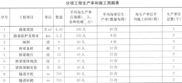 某工程A标段的招标文件要求投标人在编制标前施工组织设计应填写“分项工程生产率和施工周期表”。 问题: 根据施工总体计划和分项工程生产率...