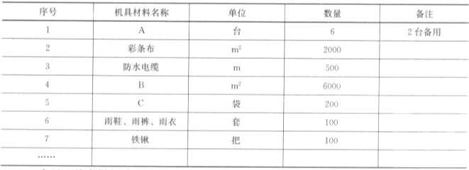 问题 某施工单位承包了高速公路M合同段路基工程,合同工期2年,每年5~8月为雨期。本合同段有填有挖,且需以挖做填,项目部充分考虑雨期对施工的影响,对选择施工的项目进行详细考察,编制雨期施工专项方案,项目物资部门针对雨期施工方案,在雨期施工前将工程所需防雨、防洪物资组织进场,主要有: 正式开工前先做好路基临时排水。雨期路堤填筑工艺按“四区段八流程”组织,采用振动压路机压实。填料利用挖方土作填料,选用砂类土和重粘土等,做到随挖随填及时压实。 雨期路堑施工分层开挖,每挖一层均应设置纵横排水坡,使水排放畅通,土质路堑应连续挖至设计标高并压实,并在两侧挖好排水沟。 问题: (1)表中的A、B、C应该是什么机具或材料 (2)指出路堤填筑的错误做法。说明理由。 (3)路堤填筑“四区段”是指哪四个区段 (4)指出路堑开挖的错误做法。说明理由。