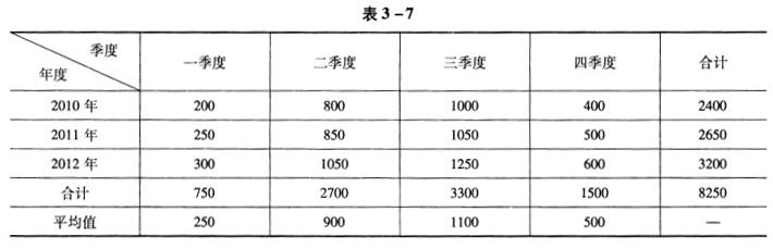 问题 共用题干为了掌握市场信息,有效安排生产运营,某知名空调生产企业积极进行市场调查和市场预测活动。首先,该企业搜集内部和外部的历史资料及文献信息,对市场的变动规律进行分析,了解空调市场的需求状况和消费者的消费行为。随后,调查人员乔装成普通消费者在家电卖场购买空调,调查该企业空调的销售环境和销售质量。最后,调查人员在家电卖场门口随机拦截消费者,征得其同意后,通过面谈和填写问卷,了解消费者的购买动机和购买偏好。该企业空调产品2010-2012年销售额如表3-7所示(单位:万元),企业拟对2012年的空调销售额进行预测。