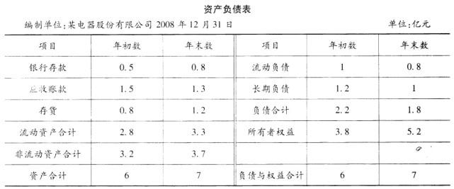 问题 共用题干某电器股份有限公司,2008年实现销售收入3亿元,实现净利润0.3亿元,公司2008年简化资产负债表如下: 根据以上资料,回答下列问题: