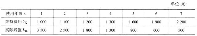 共用题干某企业有一台精密仪器原值为5000元,根据分析和预测,其逐年维持费用Yt和逐年实际残值Ln(n=1、2、3、4、5、6、7)见下表:根据以...