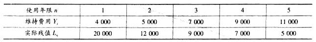 问题 共用题干 某企业有一台模具加工设备,原值为32000元,根据有关资料,其逐年维持费用Yt和逐年实际残值Ln(n=1、2、3、4、5)均为已知值,见下表:
