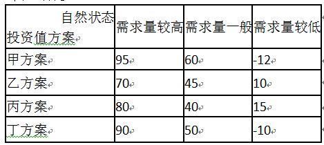 某企业准备生产一种新产品,估计这种产品在市场上的需求量有三种情况:需求量较高、需求量一般、需求量较低,对每种情况出现的概率无法预测。为了生产这种产品,企业...