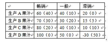 选项 A、生产A果汁 B、生产B果汁 C、生产C果汁 D、生产D果汁