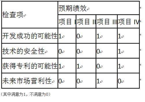 问题 某网络测试设备企业拥有先进的研发技术,在技术方面,致力于占据领导地位,率先采用新技术,并使新产品最早进入市场,获取较大的市场占有率和利润。2013年计划投资开发新的技术项目,对各方案按评判标准给出了相应评价如下表所示: 该企业采用检查清单法,应当选择的项目是()