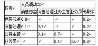 相关内容:企业,现有,100人,业务,主管,销售,经理,总监,人员,变动,矩阵,如下,预测,供给量