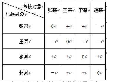 解析 王某在一一比较法中,相对于其他三人表现都要好,因为王某的+最多。