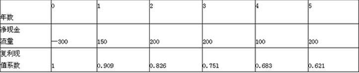 解析 本题考点净现值的计算。已知每年的净现金流量和复利现值系数,可以根据公式得,150×0.909+200×0.826+200×0.751+100×0.683+200×0.621—300=344.25。