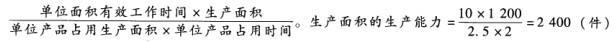 问题 某车间单一生产某产品,单位面积有效工作时间为每日10小时,车间生产面积l200平方米,每件产品占用生产面积2.5平方米,每生产一件产品占用时间为2小时,该车间的生产能力是()件。
