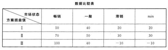 按照悲观原则可知。数据比较表