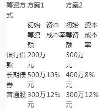 相关内容:根据,材料,企业,开发,新产品,需要,资本,总额,1000万元,现有,两个,组合,方案,财务风险,承受