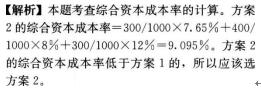 问题 根据以下材料,回答93-96题 某企业拟开发一种新产品,需要资本总额为1000万元,现有两个筹资组合方案可供选择,两个方案的财务风险相当,都是可以承受的,具体如下表: 其中银行借款的利率为10%,每年付息,到期一次性还本,筹资费率为2%,企业所得税税率为25%。 经分析,该企业应选择(  )。查看材料