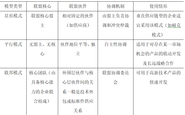 相关内容:自发性,方式,盟主,核心,企业,联盟,模式,平行,联邦,星形