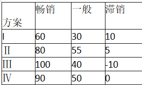 某企业拟开发新产品,有四种设计方案可供选择,见下表。根据后悔值原则,该企业应选择()。 A.I B.Ⅱ C.Ⅲ D.Ⅳ