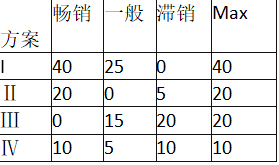 解析 本题考查后悔值原则的计算。 min{40,20,20,10}=10,对应的方案Ⅳ为选取方案。