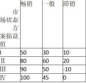 某企业拟开发一种新产品,有四种设计方案可供选择,见下表。 根据以上资料,回答下列问题: 根据乐观原则,该企业应选择( )。A.I B.Ⅱ C....