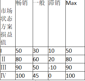 解析 本题考查不确定型决策方法中的乐观原则。 max={50,80,90,100}=100,应该选方案Ⅳ。