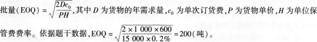 解析 此题考查经济订货批量模型的应用。经济订货批量的基本计算公式为:经济订货