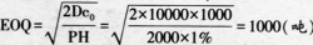 解析 本题考查经济订货批量的计算。根据题干可知,D=10000(吨),P=2000(元/吨),C0=1000(元),H=1%。则经济订货批量