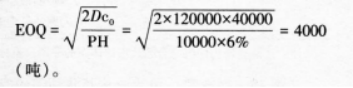 问题 某塑料制品企业一种原材料的年需求量为120000吨,单价为1万元/吨,单次订货费用为4万元,每吨年保管费率为6%,则该种原材料的经济订货批量为( )吨。