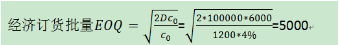 某工厂每年需消耗煤100000吨,每吨煤的价格为1200元,每吨煤的年保管费率为4%,单次订货成本为6000元。假设煤的价格不因采购数量的不同而产生折扣。...