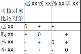 解析 本题考查绩效考核方法中的一一对比法。加号越多对该考核对象的评价越高。该题中钱XX的加号最多,他的绩效水平最好。