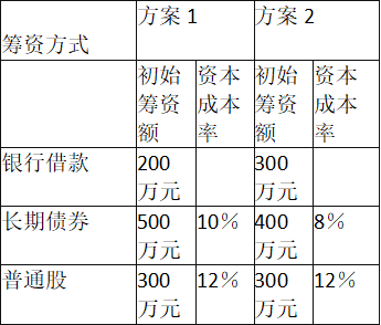 相关内容:企业,开发,新产品,需要,资本,总额,1000万元,现有,两个,组合,方案,财务风险,承受,银行