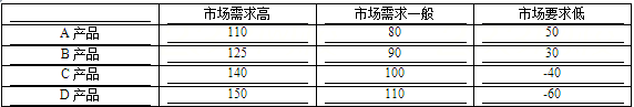 问题 某奶粉生产企业将目标顾客定位于老年购买群体,专门生产适合老年人体质的奶粉,取得了良好的市场效果。为了降低成本,该企业建立奶牛养殖基地,自主供应奶源。为了提升产品竞争力。该企业与国际知名奶粉生产企业建立战略联盟。共同硏发新型奶粉产品存在着市场需求高市场状般市场需求低三种可能的市场状状都种产品方案均该新型奶粉共有A产品、B产品、C产品、D产品四种开发方案可供选择但各种状态发生的概率难以测算。在市场调查的基础上,该奶粉生产企业对四种备选方案的损益值进行了预测,在不同市场状态下损益值如下表所示(单位:百万元)。 产品方案的决策损益表 若采用这种原则进行新型奶粉产品的决策(最大值系数为0.75),该企业应选择的方案为开发()。