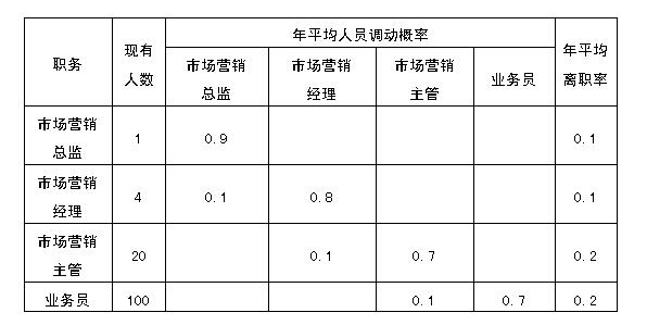 某企业根据人力资源需求与供给状况及相关资料,制定2017年人力资源总体规划和人员接续及升迁计划,经过调查研究,确认该企业的市场营销人员变动矩阵如下表所示。...