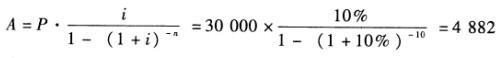解析 已知年金的现值公式:,又P=30000元,n=10,i=10%,则: