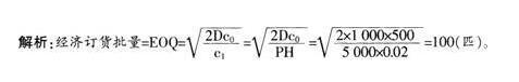 根据下面材料,回答91-95题。 某制衣厂每年需要消耗绸缎1 000匹,每匹绸缎的价格为5000元,每匹绸缎的保管费率为2%,单次订货成本为500元,订...