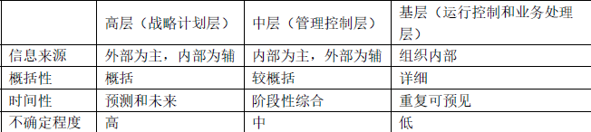 问题 (该知识点在 2018年教材已删除)由于管理层次的构成和目的不同,每个层次的信息需求也不同,下列各项中,对不同管理层次信息需求特点表述正确的是()。