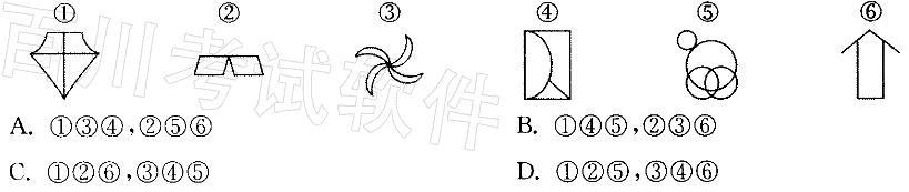 把下面的六个图形分为两类,使每一类图形都有各自的共同特征或规律,分类正确的一项是: