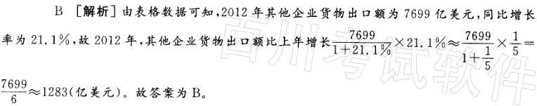 2012年,其他企业货物出口额比上年增长()亿美元。A.662.1 B.1341.4 C.278.5 D.2056.3