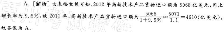 2011年,高新技术产品货物进口额为()亿美元。A.4628.3 B.4939.1 C.5485.4 D.7537.2