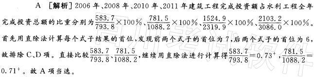 问题 建筑工程完成投资额占水利工程全年完成投资总额比重最大的年份是( )。 A. 2006 年 B. 2008 年 C. 2010 年 D. 2011 年