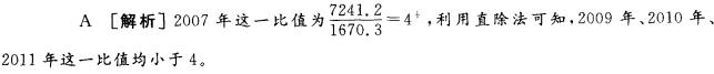 问题 下列年份中,制造业就业人员工资总额与金融业就业人员工资总额之比最高的是( )。 A. 2007 年 B. 2009 年 C. 2010 年 D. 2011 年