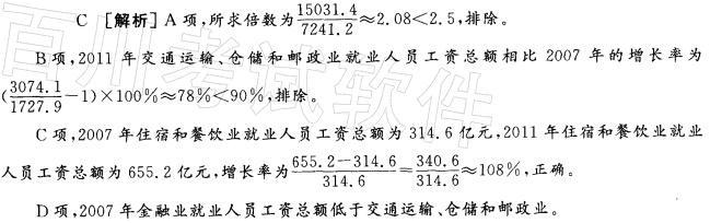 下列关于2007—2011年间城镇单位就业人员工资总额的变化,能够从资料中推出的是( )。A. 2011年制造业就业人员工资总额约是2007年...