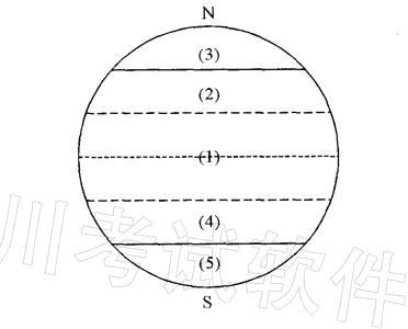 下列关于图中地球温度带的说法错误的是( )。A.区域(1)属于热带,一年当中会有阳光直射B.我国大部分地区属于区域(2)C.区域(3)和(...