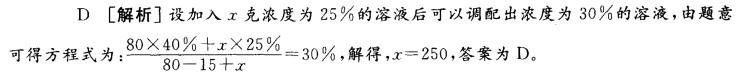 问题 有浓度为40%的甲溶液80g,放置一天后,蒸发掉15g的水分,请问需要加人多少克浓度为25%的相同溶质的乙溶液,才能使混合溶液的最终浓度达到30%?( ) A.125 B.150 C.175 D.250